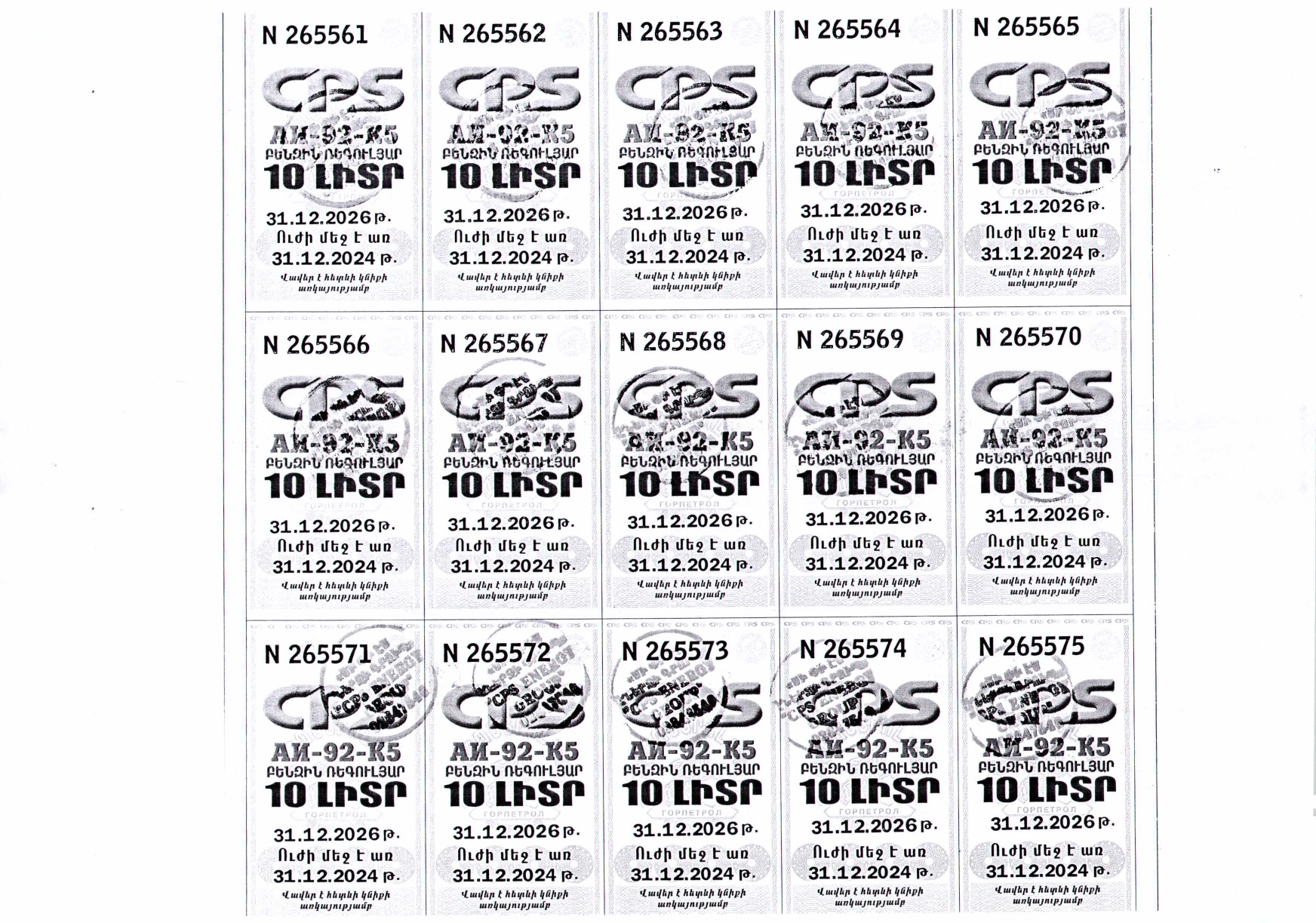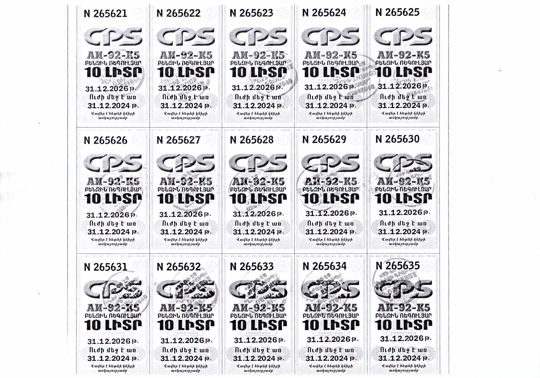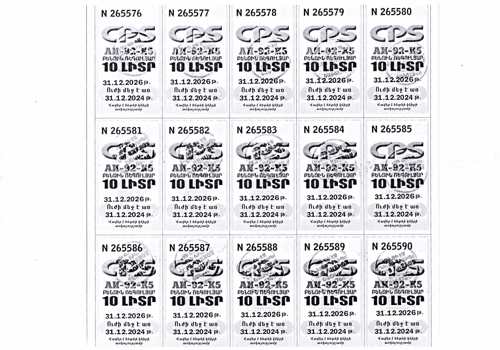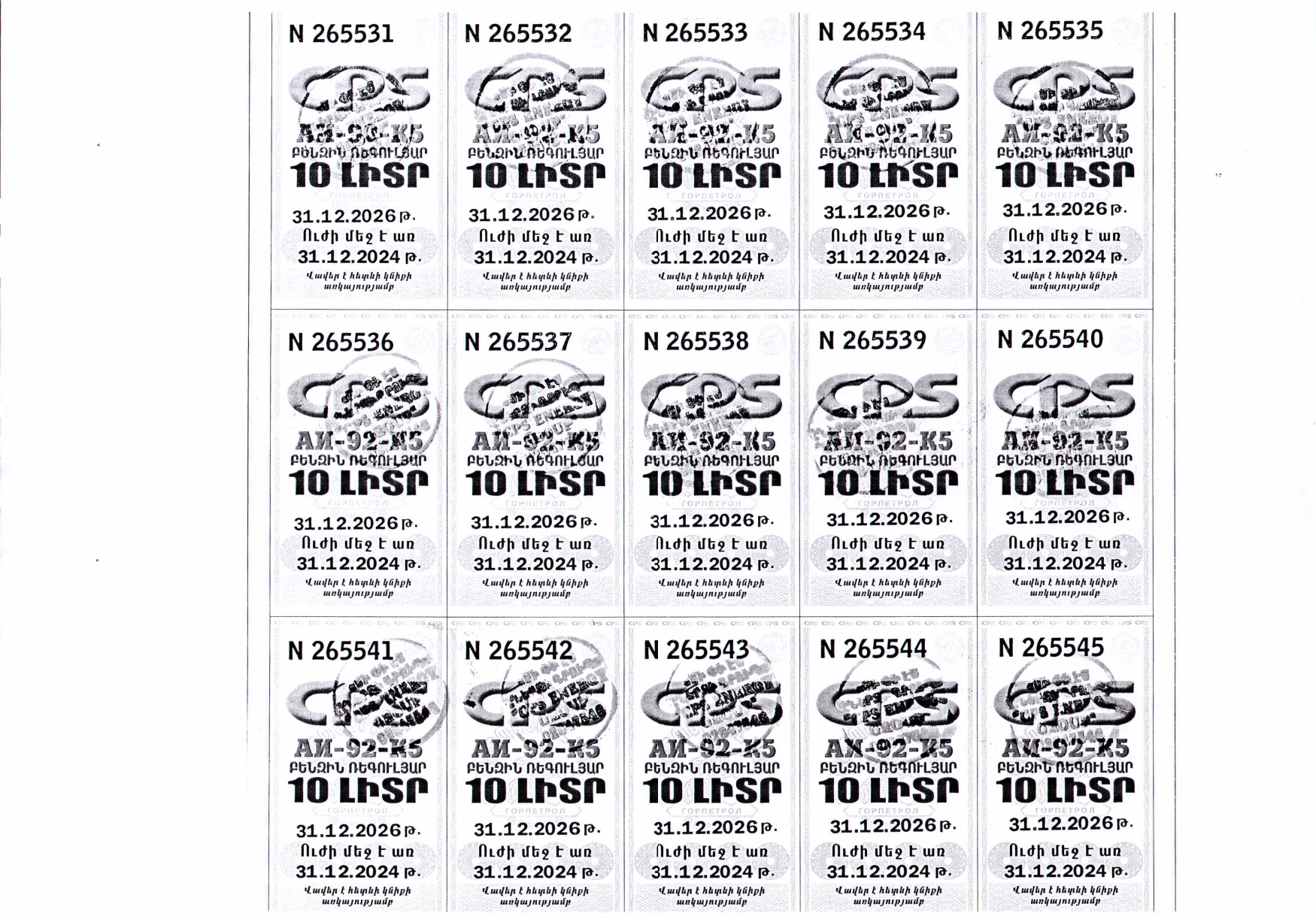 Բենզին ռեգուլյար /ԱԻ-92/ կտրոններով /2320 լիտր/