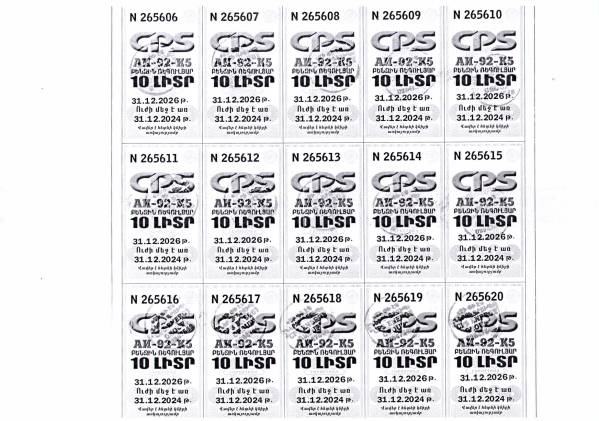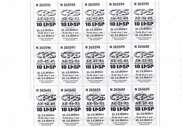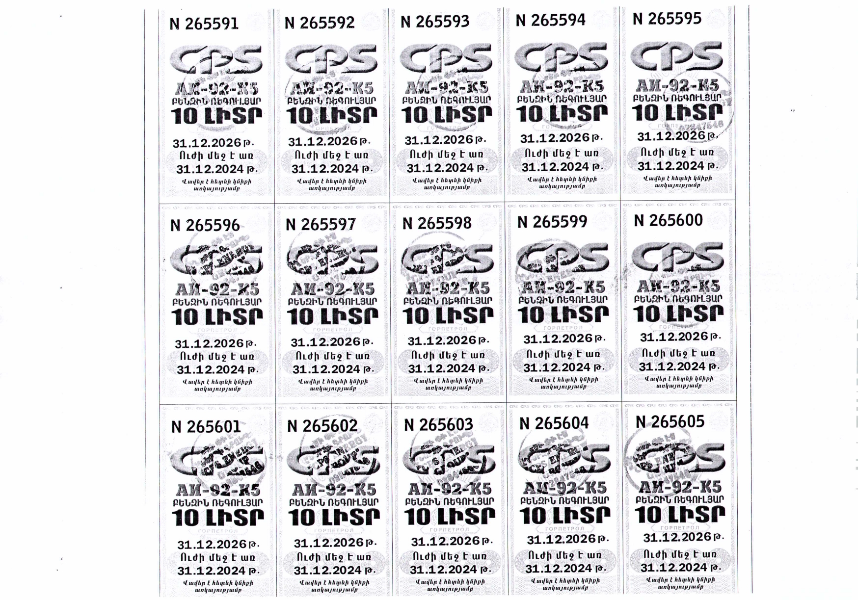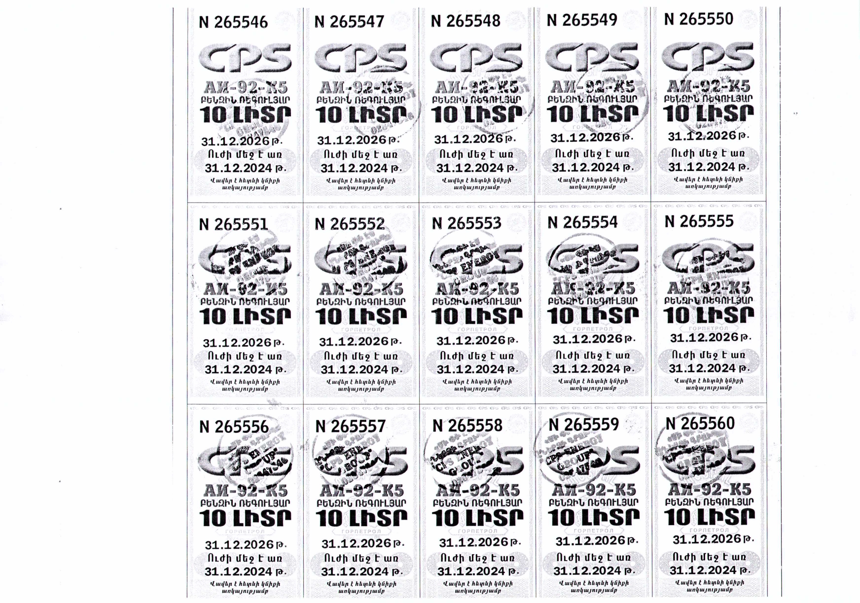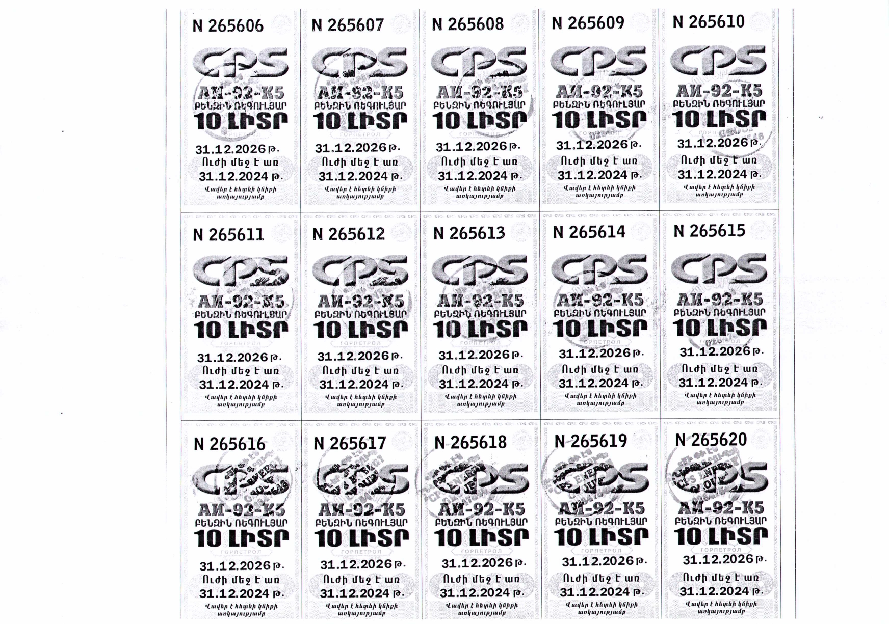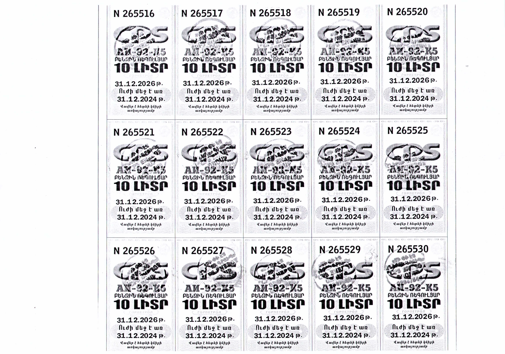 Բենզին ռեգուլյար /ԱԻ-92/ կտրոններով /2320 լիտր/